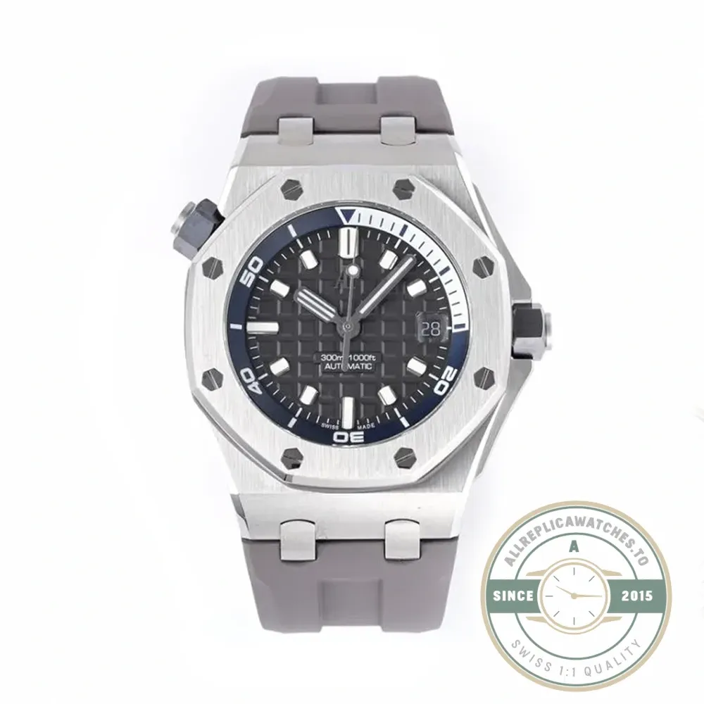 Black-dial steel Offshore references have appeared in every generation since the original 1993 launch. The 15720ST.OO.A009CA.01 carries that lineage forward with modern case engineering while maintaining the aggressive silhouette that made the Offshore a category of its own. On wrist, the steel adds tangible heft compared to ceramic equivalents, which some wearers prefer as it signals solidity. The rubber strap offsets that weight with flexibility and comfort. If the standard steel Offshore diver in black is your target, this replica Royal-Oak-Offshore 15720ST black is the current-generation reference to focus on.