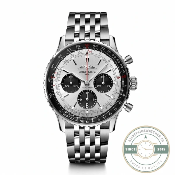 A silver-dial chronograph goes with nearly everything in a wardrobe, from weekend denim to a Monday blazer. The 43mm case wears slightly smaller than the number suggests because the slide rule bezel consumes some of the visual diameter, pulling the eye inward. The seven-row bracelet distributes weight evenly and drapes well on most wrist sizes. This replica navitimer ab0138241g silver puts that pilot-chronograph heritage on a neutral canvas that fits more occasions than a black or colored dial would.