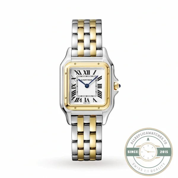 Yellow gold at this scale reads as an unmistakable statement piece. The 27 x 37 mm case covers a meaningful portion of the wrist, and the matching gold bracelet extends that footprint further. Quartz movement keeps the profile flat, allowing the watch to sit flush against skin without wobble. Among the large Panthere references, the yellow gold W2PN0007 is for buyers who want the most traditional and visually bold option. This replica Panthere PN0007 37mm represents that classic configuration in the collection’s flagship dimensions.