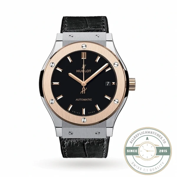 The automatic caliber inside runs at a standard 28,800 vph beat rate with a power reserve sufficient for weekend desk rest. Date changes cleanly at midnight, and the crown operation provides distinct positions for winding, date set, and time set. Hublot positions this reference as a daily-wear automatic rather than a chronograph or skeleton showpiece. The movement sits behind a solid caseback, consistent with the understated personality of the Classic Fusion line. Compare the internal approach against the Chronograph 521.CM.1770.RX where the added complication changes wrist thickness noticeably.