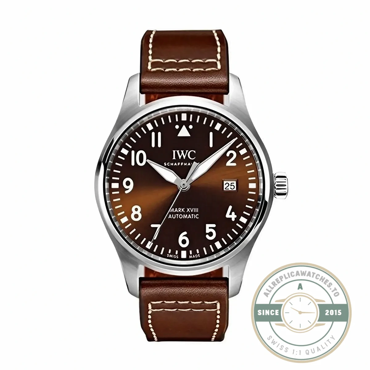 The IW327003 shares its 40mm case, sapphire crystal, and automatic movement with every other Mark XVIII reference. What separates it is mood. The brown dial reads quieter in a room full of black-dial pilots, and the tonal strap match reinforces a cohesive look from buckle to bezel. For anyone building a rotation that already includes a dark-dial daily wearer, this replica Mark IW327003 brown variant fills a gap that no other Mark XVIII reference addresses.