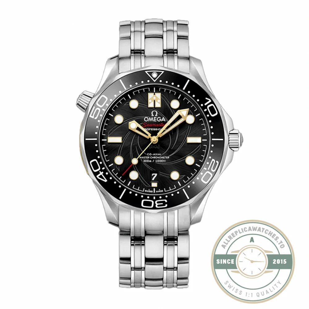 This replica Seamaster Diver 300M 007 210224 carries reference 210.22.42.20.01.004 and belongs to the James Bond limited edition series within the Diver 300M lineup. Omega has produced numbered 007 editions since the mid-1990s, and this 42mm reference continues that tradition with design elements tied directly to the Bond franchise. The mixed-material case combines steel with specific finishing details that set it apart from the standard Diver 300M production catalog.