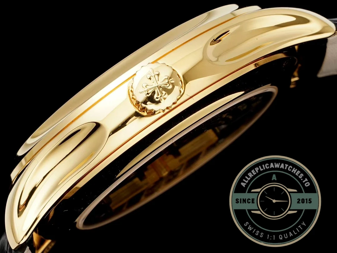 The replica complications 5327 / 5140 series gold 40mm wraps one of horology’s finest perpetual calendar movements in a 40mm yellow gold case with a warm gold dial. The Patek Philippe 5327 / 5140 series is a watch that pairs effortlessly with both formal and relaxed settings, offering versatility that many dress watches simply cannot match.