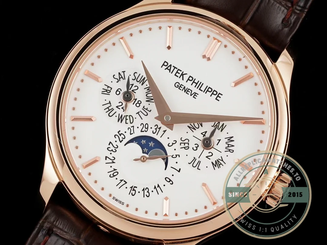 The 40mm case proves that perpetual calendars do not require large dimensions to deliver full functionality. Rose gold warmth and gold dial tones create a unified aesthetic that improves with wear. The replica complications 5327 / 5140 series gold represents the classical approach to complicated watchmaking at its most refined.