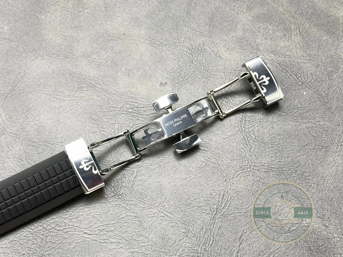 This replica nautilus 69395 is a folding buckle engineered specifically for Aquanaut composite rubber straps from Patek Philippe. The Aquanaut line uses a proprietary tropical composite strap that resists UV degradation, saltwater exposure, and temperature extremes. That strap material requires a buckle designed for its specific thickness and flexibility, which differs from the leather strap buckles used on Calatrava and Complications references. This folding buckle matches those requirements with a clasp geometry that accounts for the stiffness of composite rubber while still allowing smooth wrist entry and exit.