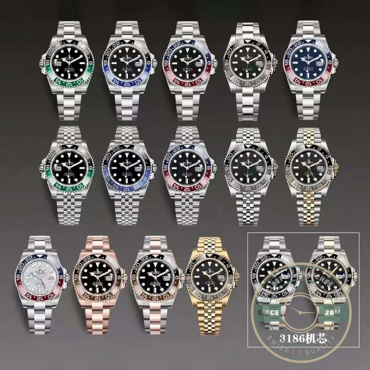 Buying a complete collection rather than a single reference gives you versatility that no single watch provides. Rotate between a Pepsi for weekends and a Batman for office wear, or match the Root Beer two-tone to a specific outfit. The consistent 40mm case diameter and shared movement platform mean muscle memory transfers between references instantly. This replica GMT-Master II collection offers that breadth without requiring separate sourcing for each piece.